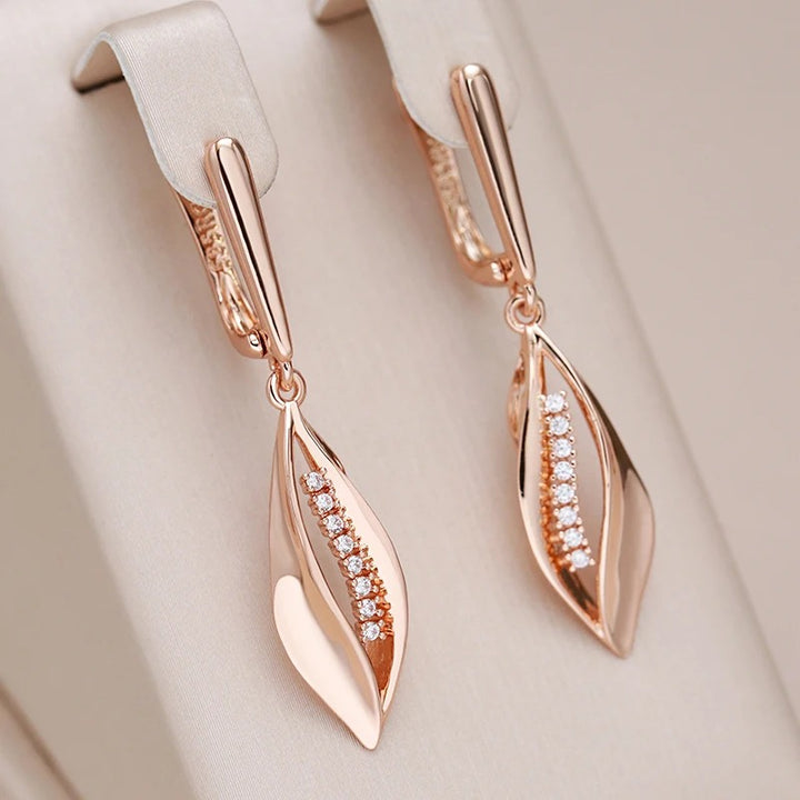 • Designul lor include un design delicat de frunză, decorat cu o linie centrală de cristale mici și strălucitoare, care adaugă un plus de rafinament și eleganță.