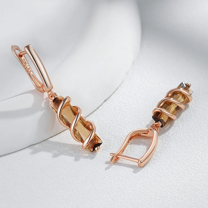 Cercei din argint placati cu aur roz 18K si cuart "Amber Swirl"