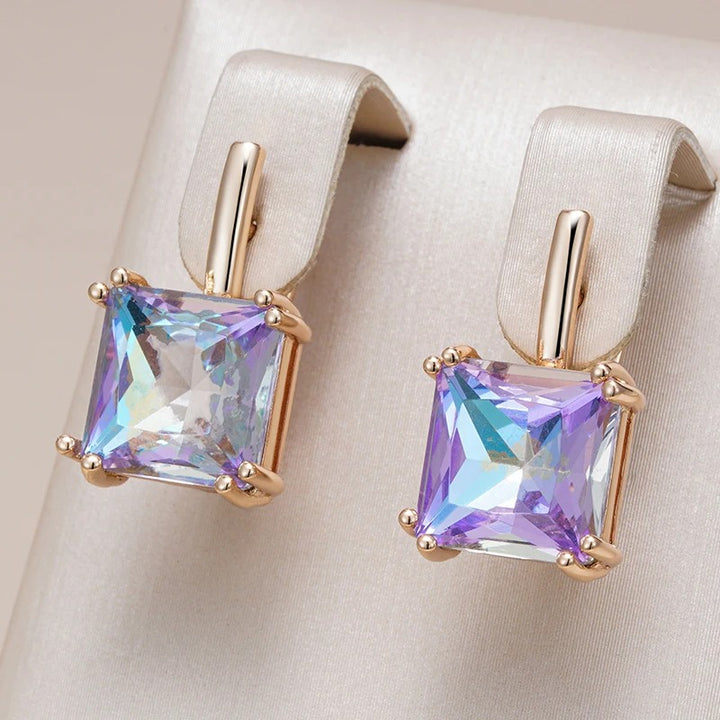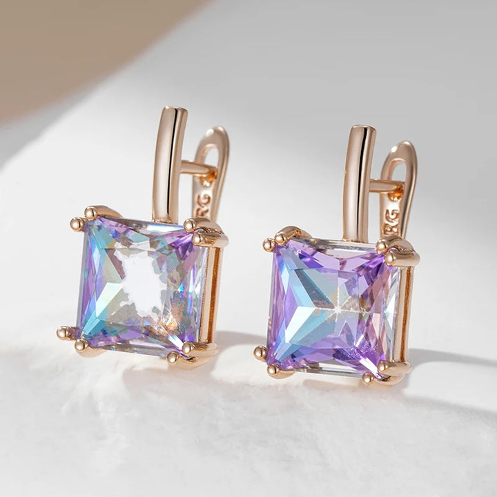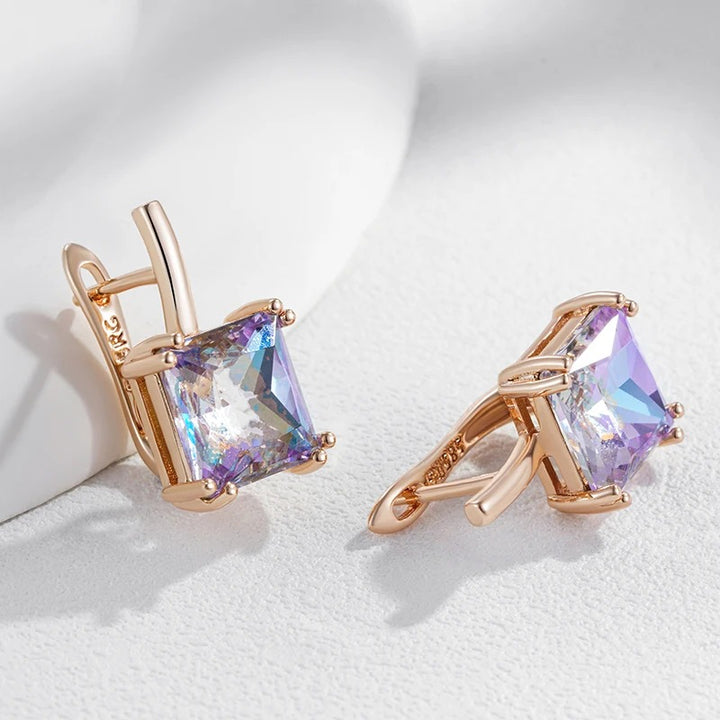• Fiecare cercel include o piatră de lună tăiată în formă pătrată, care reflectă o gamă variată de nuanțe irizante, adăugând un plus de strălucire și culoare. Strălucirea subtilă a aurului roz completează perfect jocul de culori al pietrei de lună, creând un contrast armonios și atrăgător.