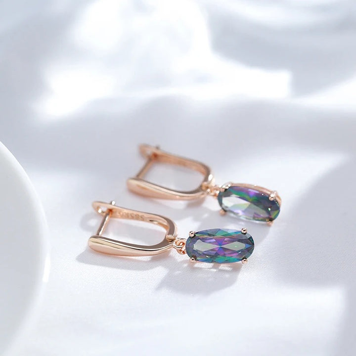 Cercei din argint placați cu aur roz 18K cu piatră din topaz mistic.