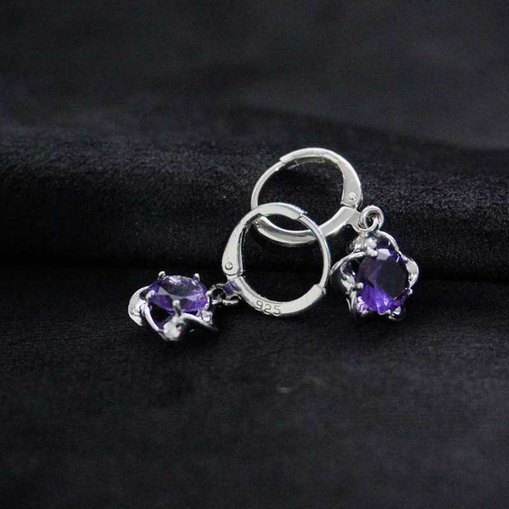 Cercei din argint 925 si piatra ametist "Velvet Flower"