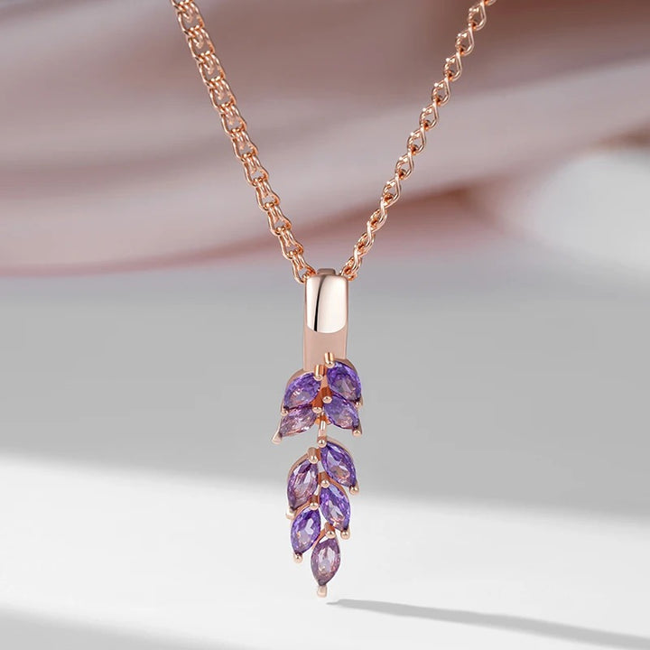 Colier din argint placat cu aur roz 18K si ametist "Lavender Leaves"