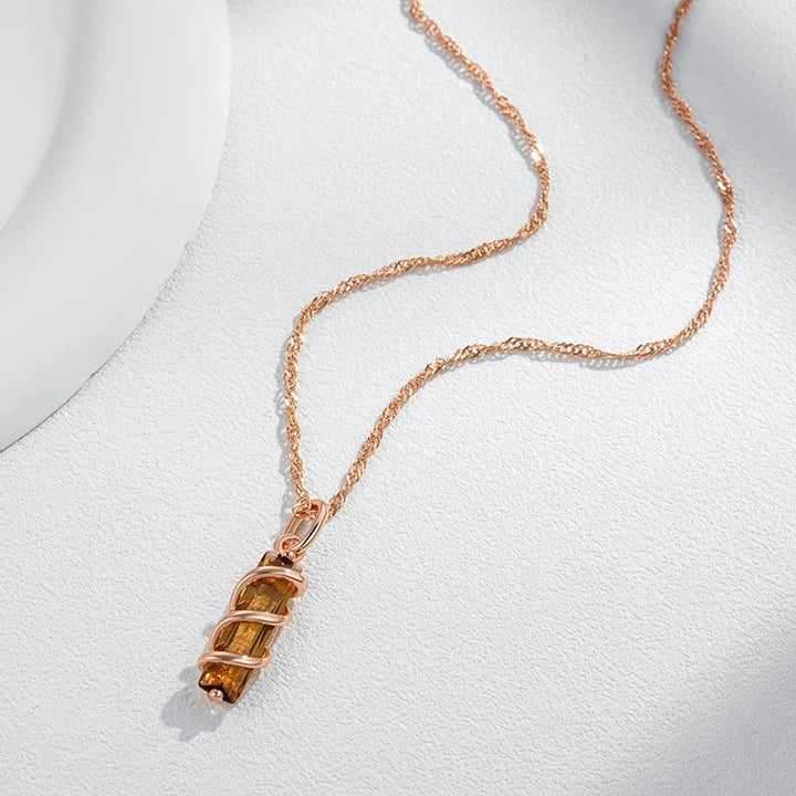 Colier din argint placat cu aur roz 18K cu piatră din cuarțz maro.