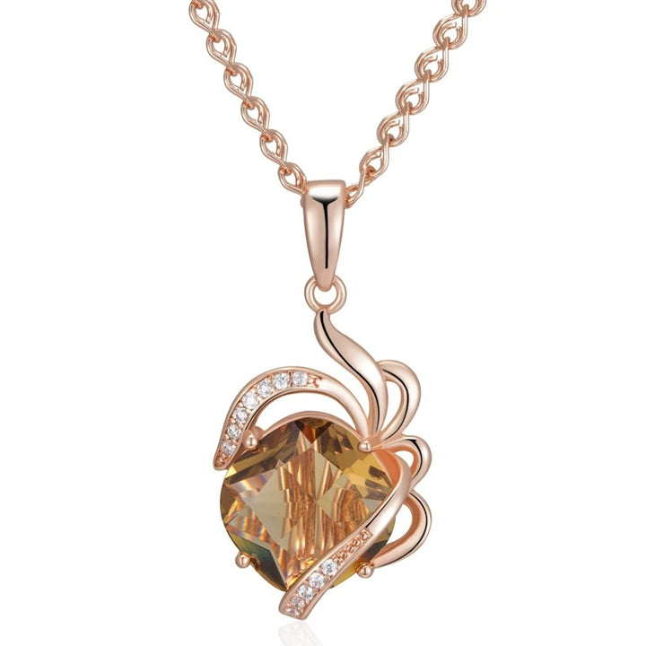 Colier din argint placat cu aur roz 18K cu piatră din cuarț maro.