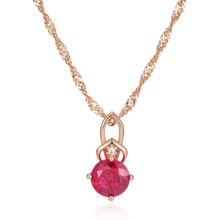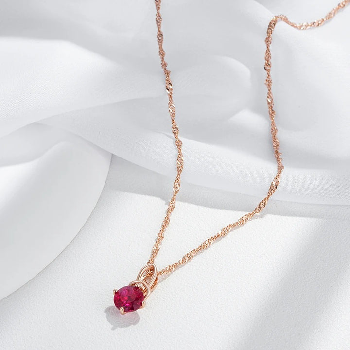 Colier din argint placat cu aur roz 18K cu piatră din rubin.
