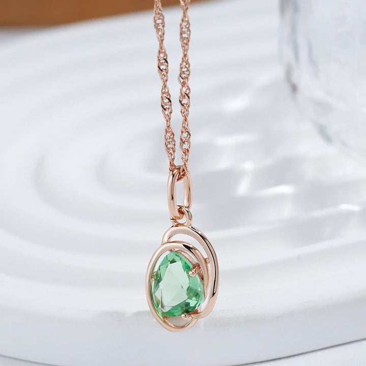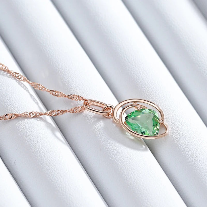 Colier din argint placat cu aur roz 18K si topaz "Green Eyes"