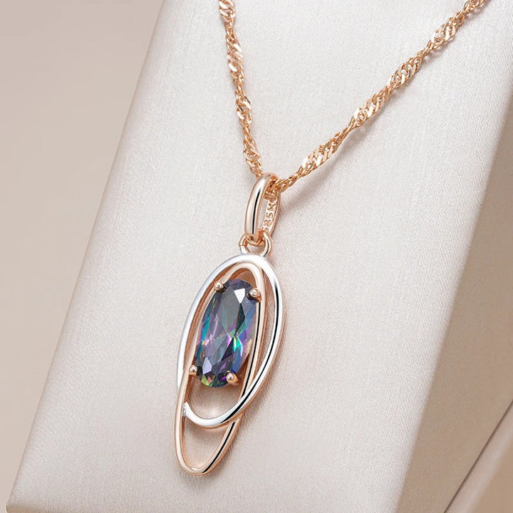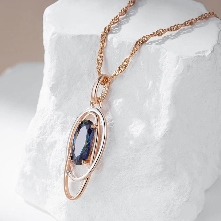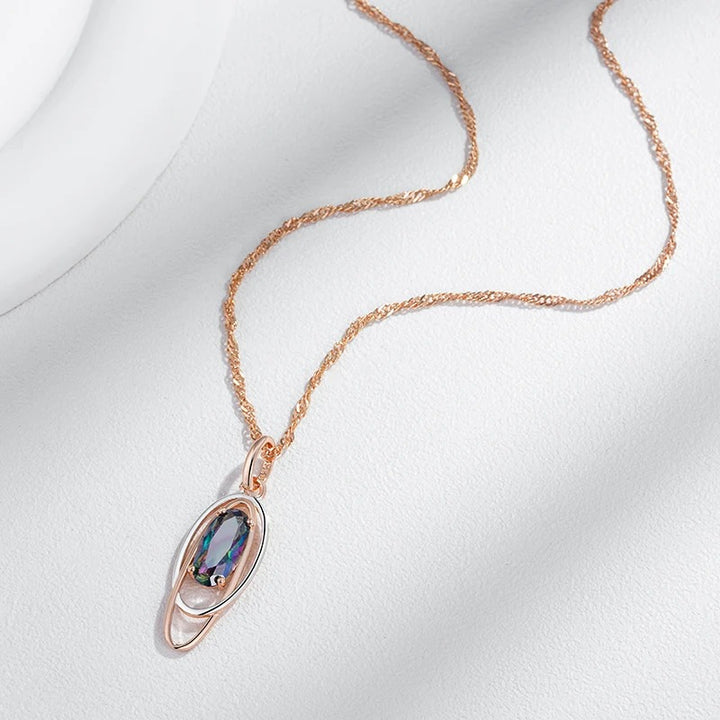 Colier din argint placat cu aur roz 18K cu piatră din topaz mistic.