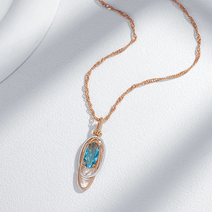 • Pandantivul include un cristal de zircon tăiat oval, cunoscut pentru culoarea sa albastră profundă și strălucirea sa fascinantă. Designul pandantivului este elegant și modern, cu margini netede și rotunjite, care permit luminii să treacă prin cristalul de zirconiu, amplificându-i strălucirea și culoarea.