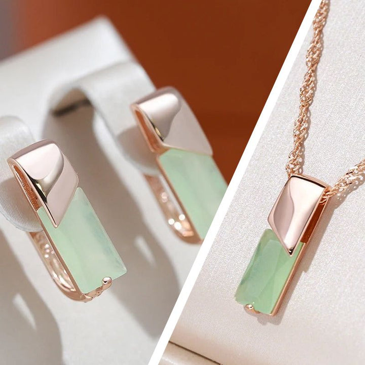 • Realizat din argint placat cu aur roz de 18K, setul “Green Shell” este o alegere sofisticată și strălucitoare.