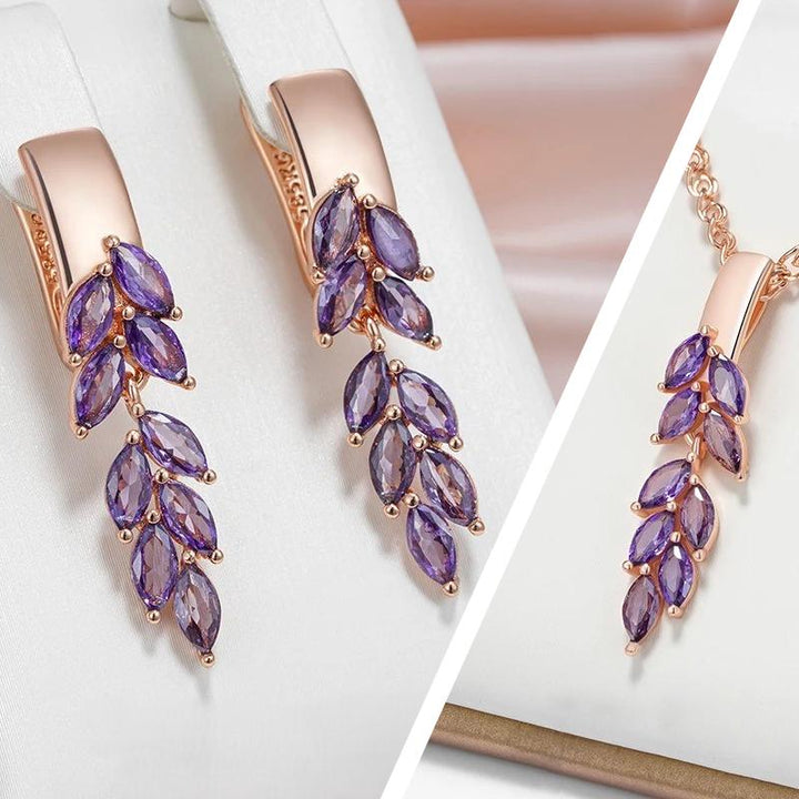 • Setul "Lavender Leaves" este ideal pentru femeile care iubesc armonia dintre natură și bijuterie, oferind o eleganță discretă, cu un accent de culoare liniștitoare și sofisticată.
