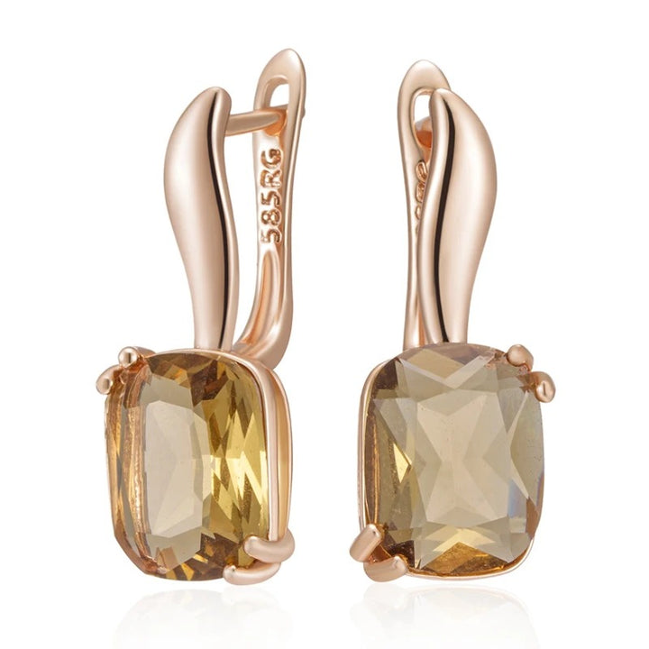 • Cerceii prezintă cristale de cuarț maro tăiate în formă dreptunghiulară, încadrate într-o montură netedă și curbată din aur roz, care adaugă un plus de rafinament și strălucire. Designul modern și elegant al cerceilor completează perfect strălucirea naturală a cristalului de cuarț maro.