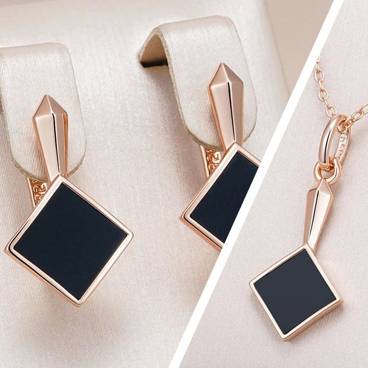 • Realizat din argint placat cu aur roz de 18K, setul “Black Square” este o alegere sofisticată și modernă.