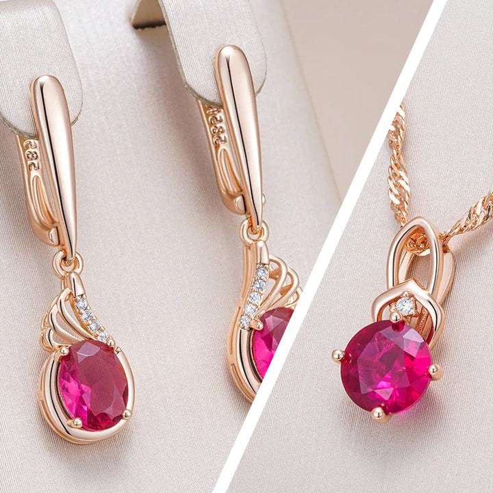 • Fiecare piesă din setul “Fuchsia Wings” este lucrată cu atenție la detalii, asigurându-se că fiecare rubin și cristal este poziționat pentru a maximiza strălucirea și rafinamentul ansamblului.