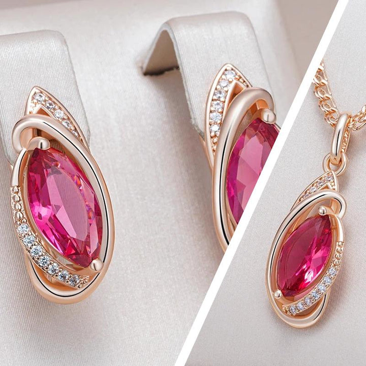 • Setul "Red Eye" este alegerea perfectă pentru femeile care apreciază combinația dintre clasic și modern, culoarea vibrantă a rubinului fiind simbol al pasiunii și eleganței.