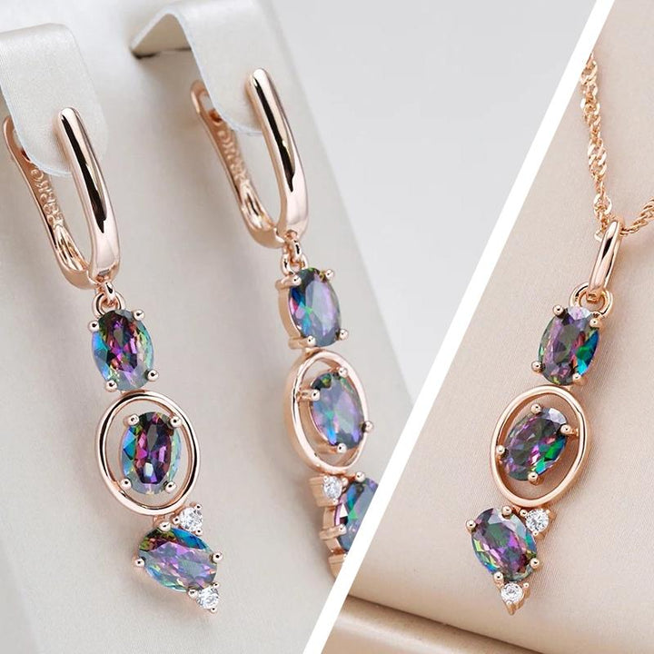 Set format din colier și cercei din argint placați cu aur roz 18K cu pietre din topaz mistic.