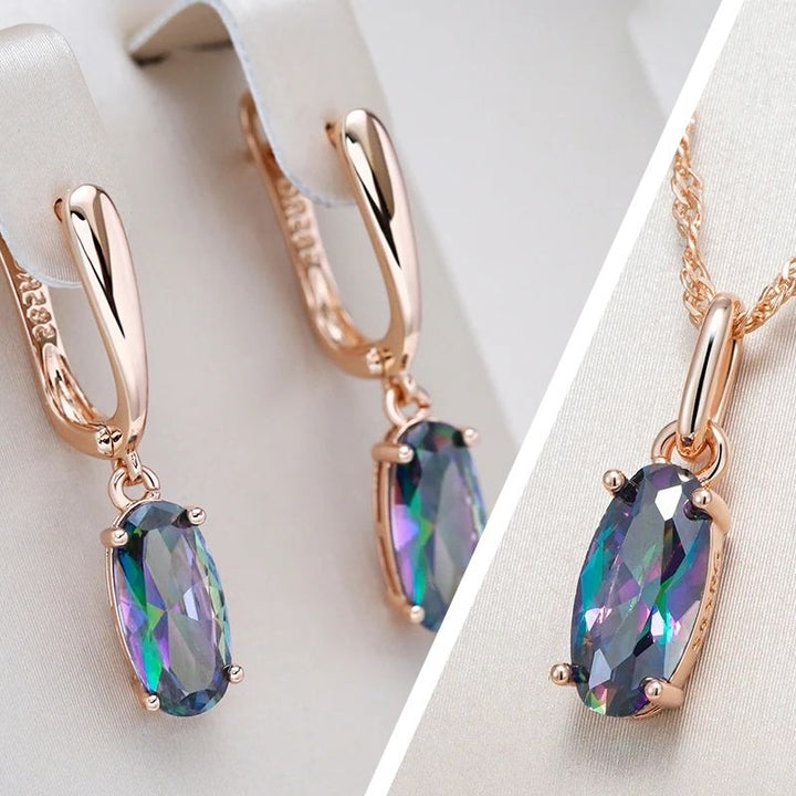 Set format din colier și cercei din argint placați cu aur roz 18K cu pietre din topaz mistic.