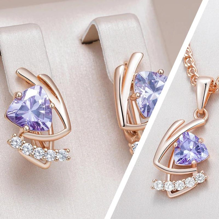 Set format din colier și cercei din argint placați cu aur roz 18K cu pietre din zircon.
