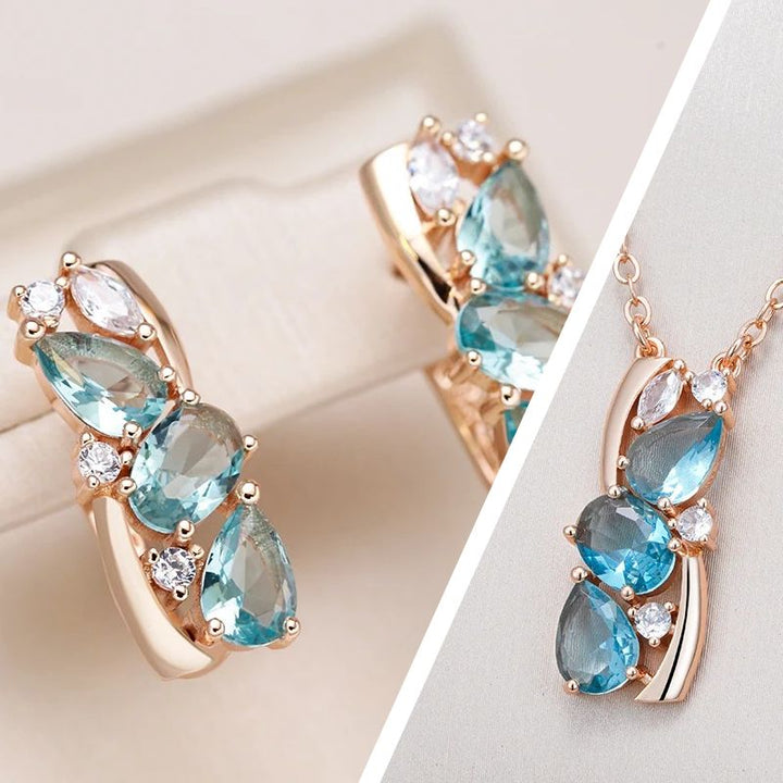 Set colier si cercei din argint placati cu aur 18K si zirconiu "Blueberry Rush"