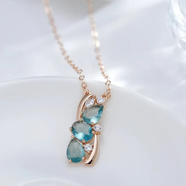 • Colierul se remarcă printr-un pandantiv asortat, cu un zirconia tăiat în formă de lacrimă încadrat într-un cadru similar delicat, suspendat de un lanț răsucit, completând perfect perechea de cercei.